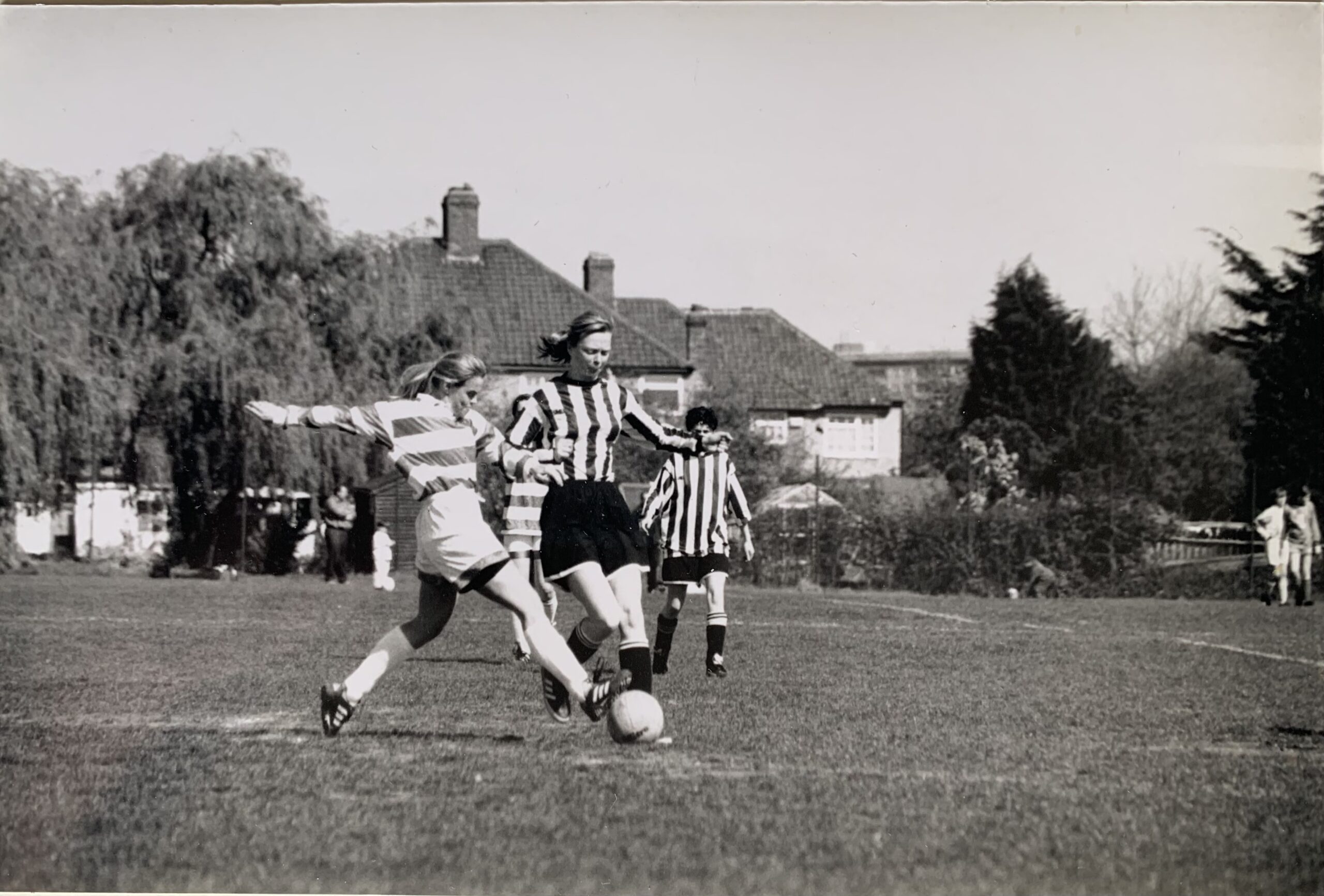 That’s me playing football in the 1980s. The women’s game has moved on quite dramatically since the days when we were viewed as a bit of a novelty and asked ridiculous questions, like, ‘ Do you swap shirts afterwards?’ and ‘ Can you chest the ball down?’ What an absolute joy it’s been over the last month to watch England Lionesses storm through the European Championships with such incredible skill, professionalism and positive energy. To witness the record-breaking crowds cheering them on and to see women playing football being taken seriously, at last. Of course, it helps that the Football Association (FA) is putting money into the game, we now have Super League players being paid to play professional football (this has only been the case in the UK for the last four or five years) and an amazing, award-winning coach, Sarina Wiegman.