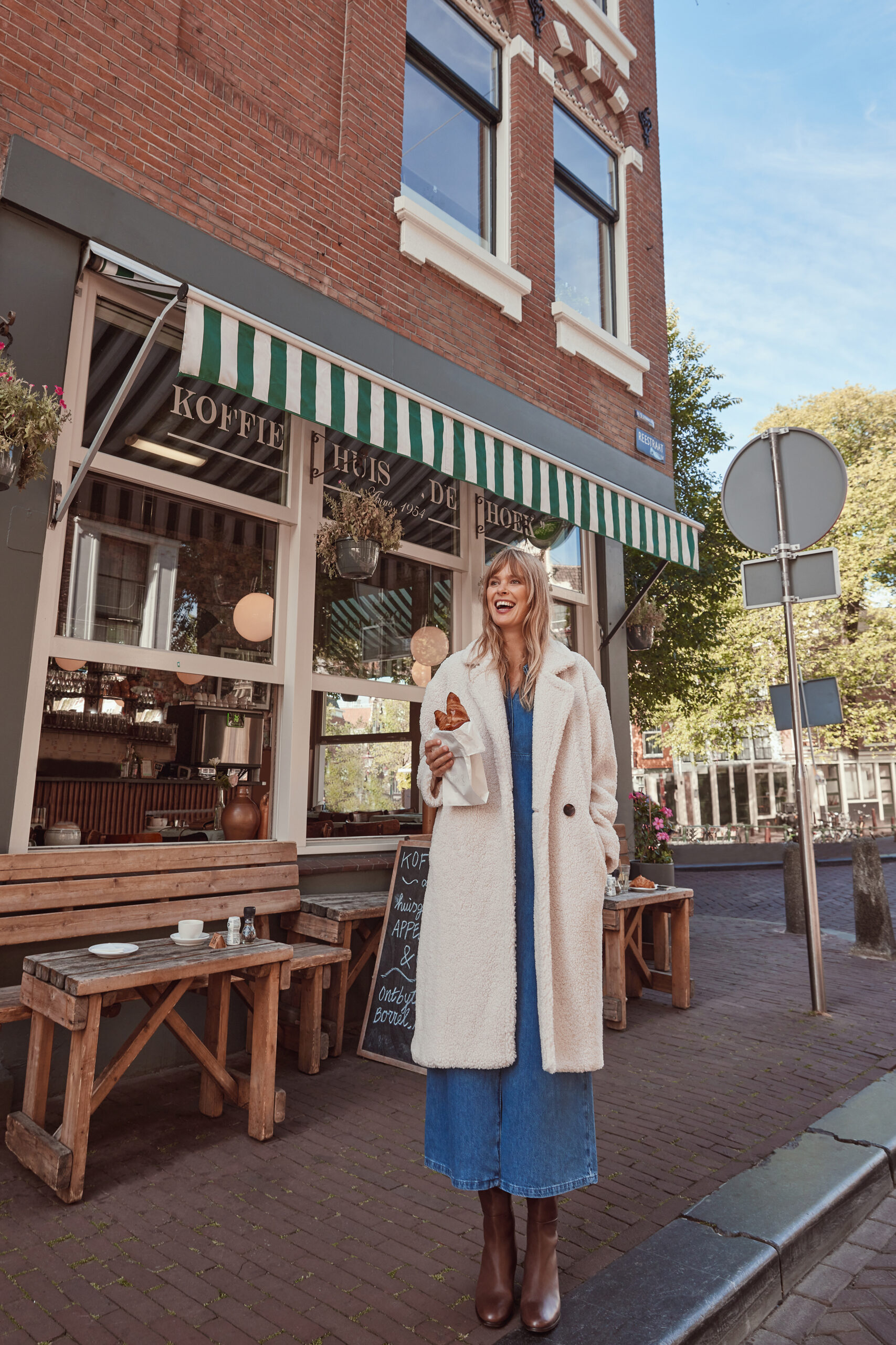 New season highlights, include: the gorgeous Quinn coat in hot pink, designed in a pull-on-and-go, cocoon shape and vibrant colour to perk up all your wardrobe basics. The responsibly-sourced Jessa denim midi skirt and the Scout denim cargo pants – these high-waisted jeans with utilitarian detailing have totally got my name on them. Bright cashmere knits to jazz up your jeans throughout the colder months. And, as always, you’ll find a fine selection of everyday dresses in eye-catching graphic prints.
